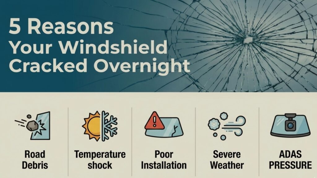 Suppose you park your vehicle in perfect condition, but then by morning, a visible crack runs across the glass. No collision. No loud impact. It feels random — but it isn’t. If your windshield cracked overnight, there was always an underlying cause.